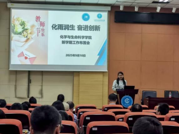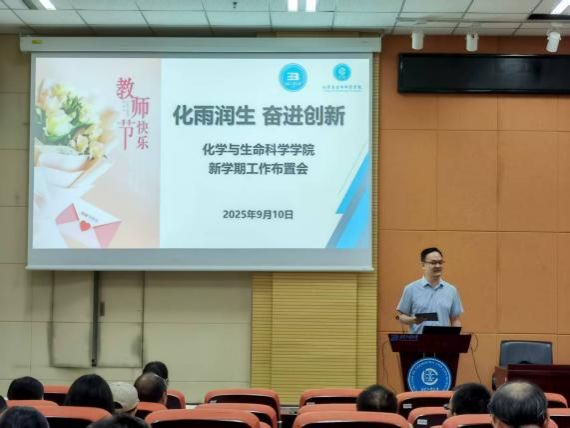 2025年9月10日下午,化学与生命科学公司在生命楼B107召开新学期工作布置会,公司班子成员及全体教职工参加会议。
